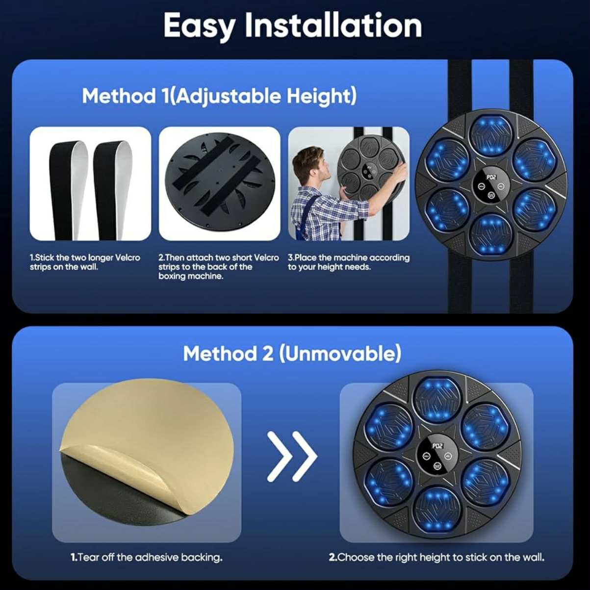 - EFFORTLESS INSTALLATION - The music boxing machine features a simple, quick installation process. With adjustable Velcro for height, it can easily be mounted on It is suitable to be installed on Marble, Basalt, Boards, and Tile walls, saving you up to 90% of installation time.