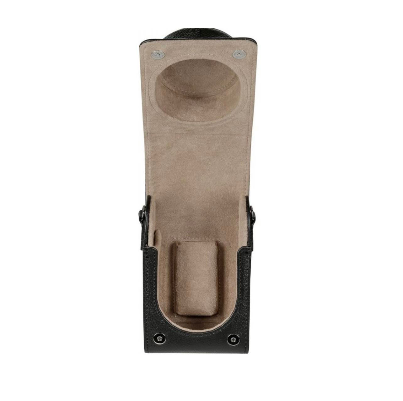 The high-quality leather case in vertical design has a shoulder strap and thus provides an ideal grip.