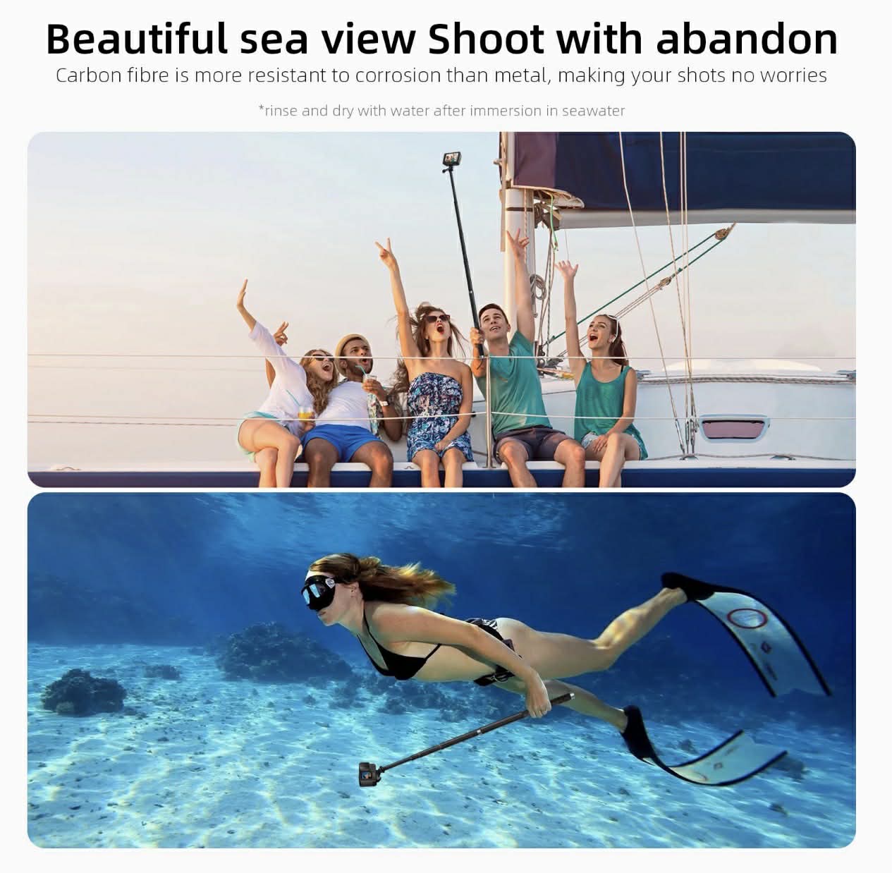 - 3m carbon fibre selfie stick makes it as light as possible and very easy to carry when traveling