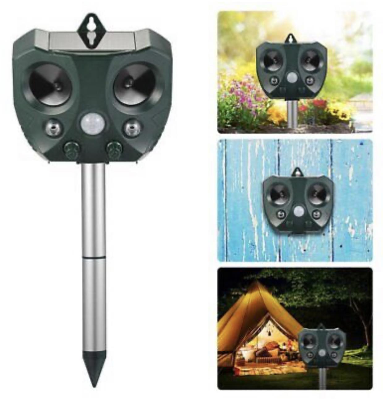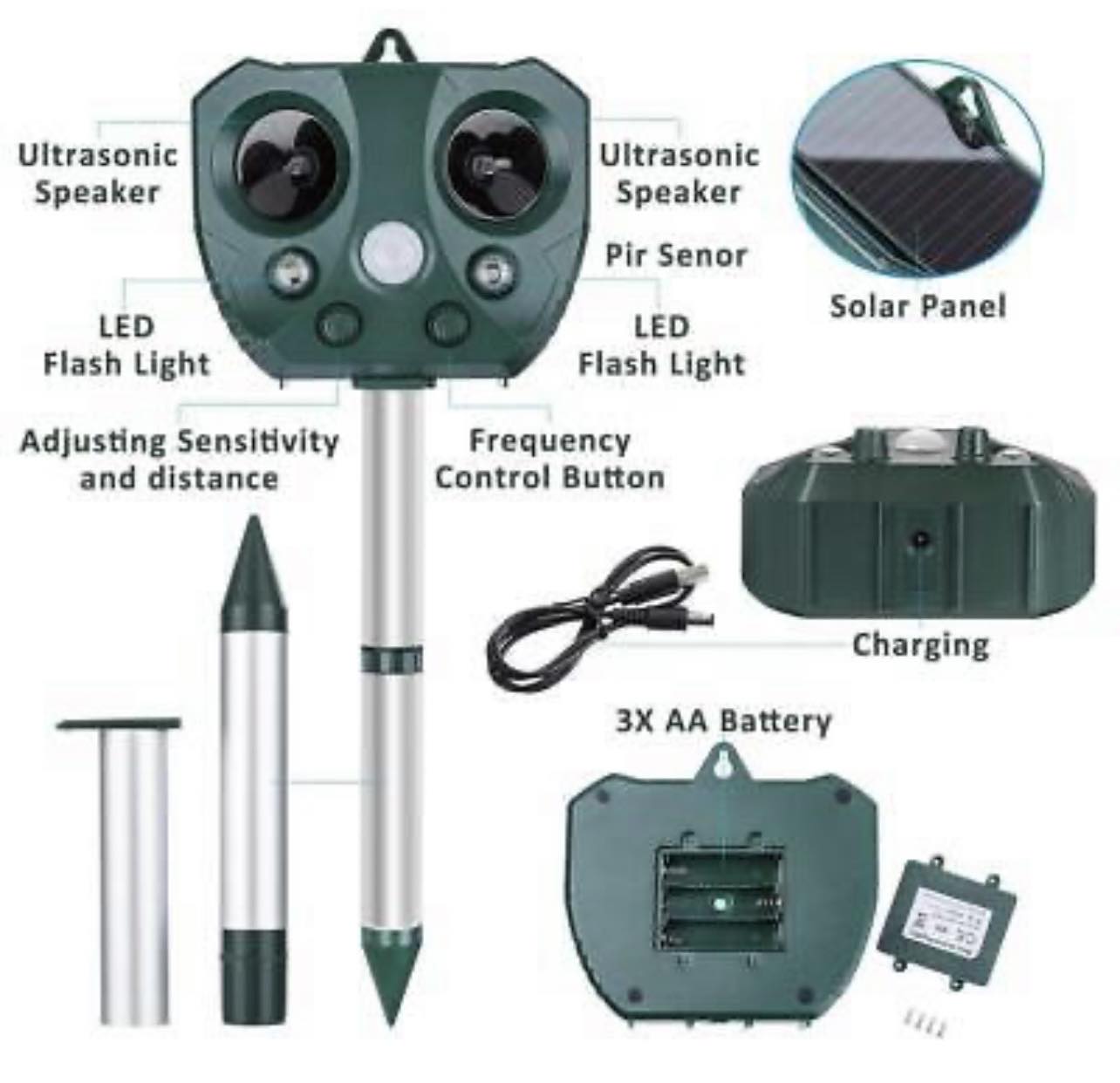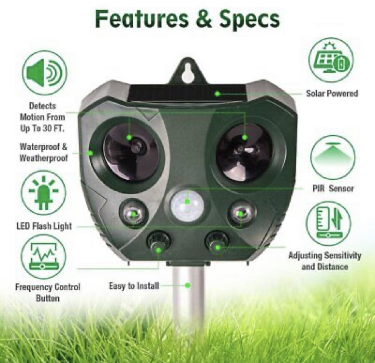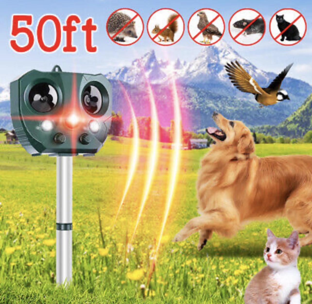 Solar Powered Ultrasonic Animal and Bird Repeller W/Flashing Light