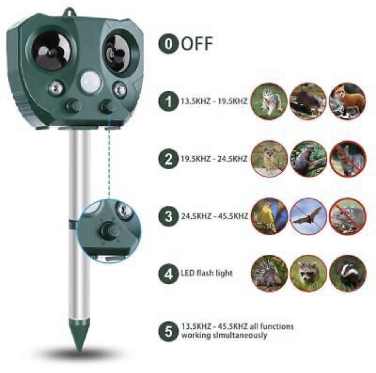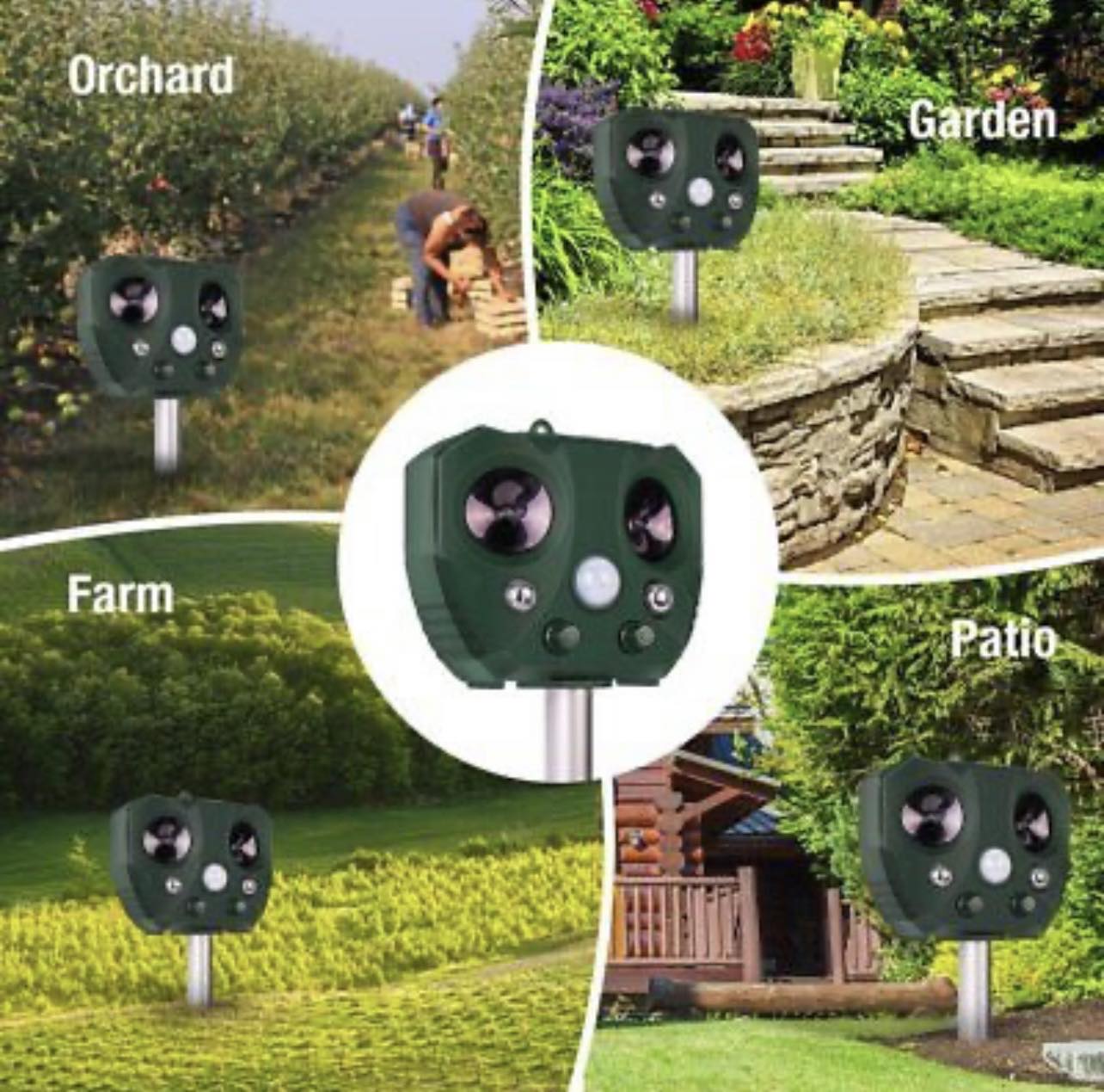 Ultrasonic & Flashing LED: Repel and intimidate nasty animals or pests by emitting powerful ultrasonic wave and strong LED flashing light, away from our farms, gardens, orchards, lawns and front yards.