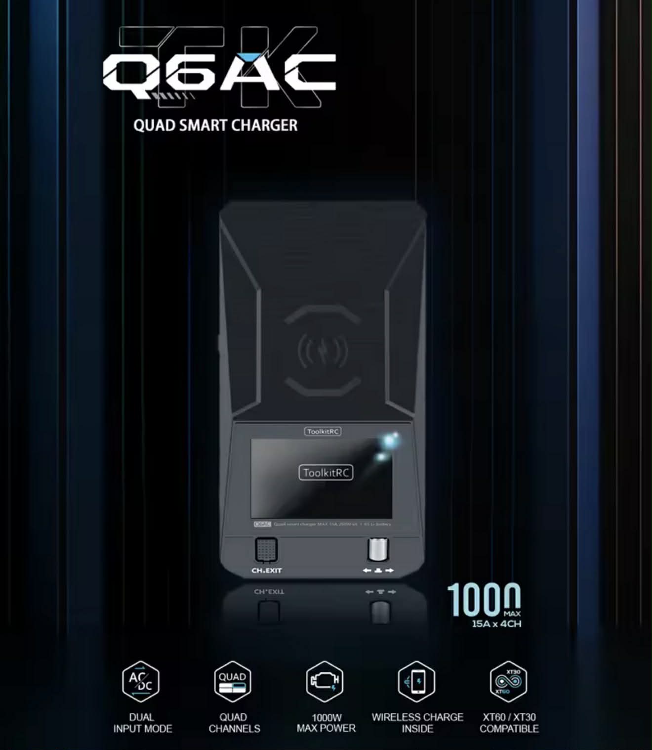 ToolkitRC Q6AC Quad AC/DC Smart Charger Wireless Charging 15Ax4CH Dual Input | TK12900